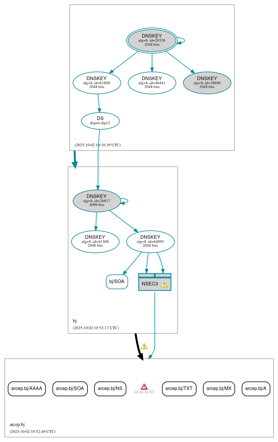 arcep.bj/DS has warnings; select the "Denial of existence" DNSSEC option to see them.