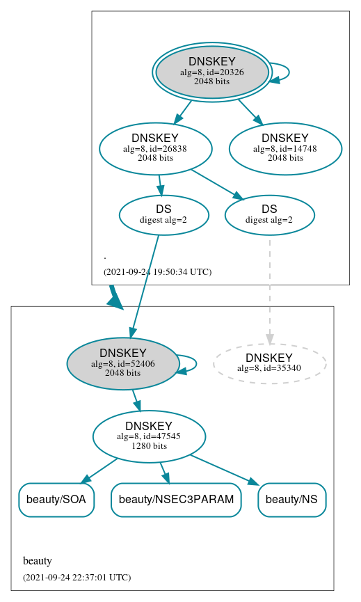 beauty/CNAME has errors; select the "Denial of existence" DNSSEC option to see them.