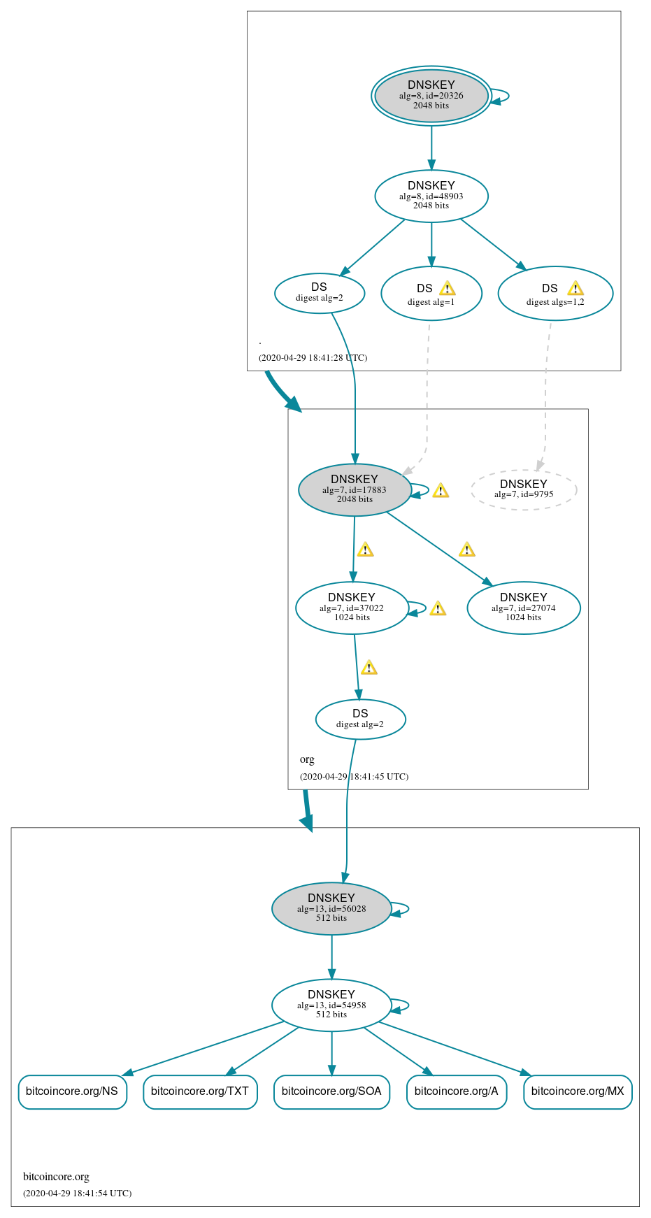 bitcoincore.org/DS has warnings; select the "Denial of existence" DNSSEC option to see them.