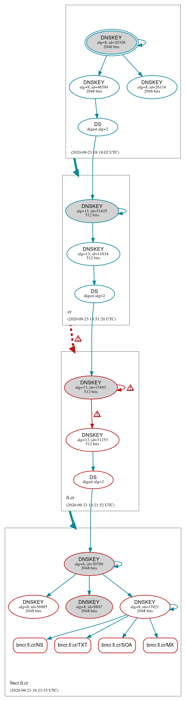 bncr.fi.cr/CNAME has errors; select the "Denial of existence" DNSSEC option to see them.