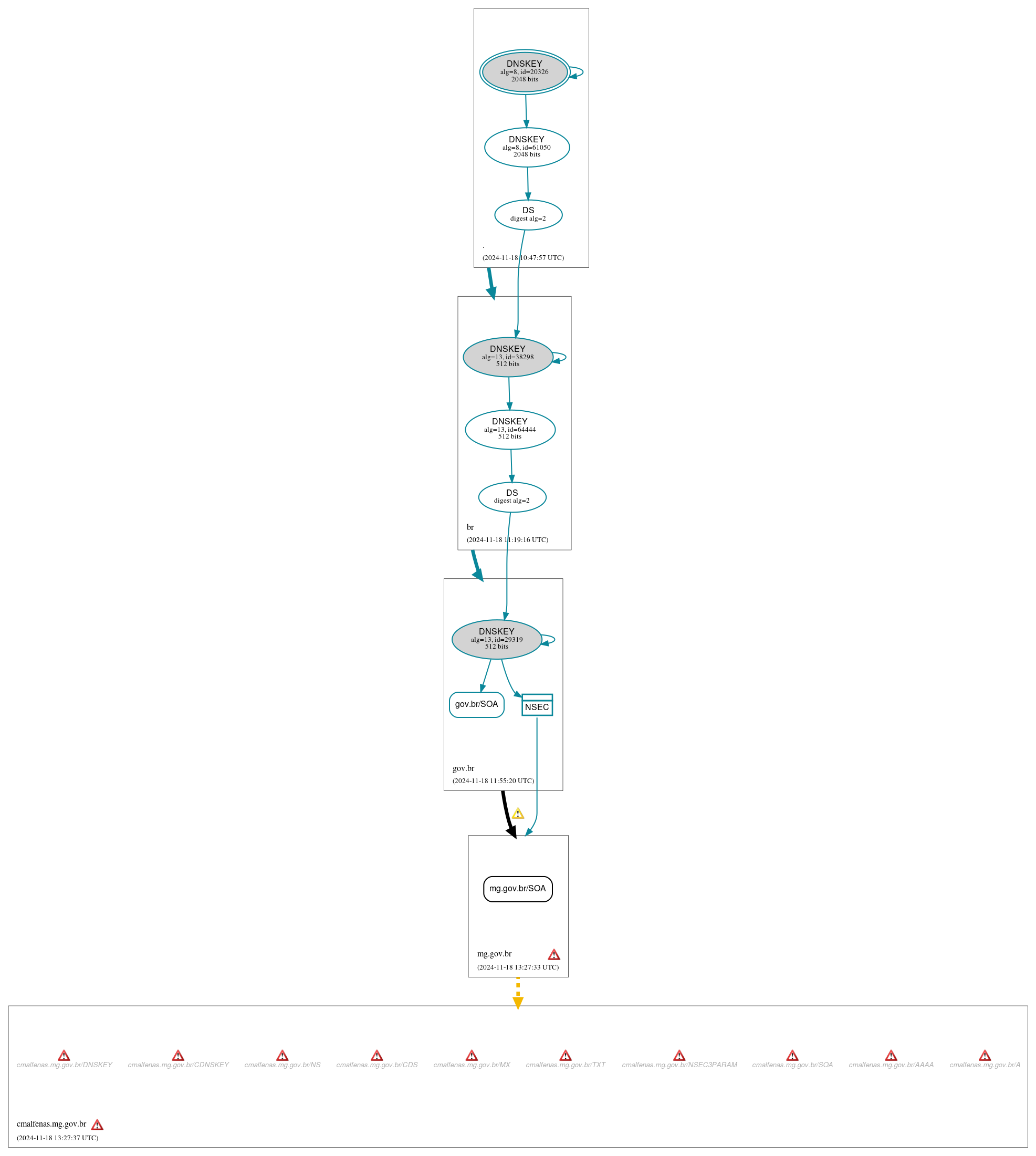 cmalfenas.mg.gov.br/CNAME has errors; select the "Denial of existence" DNSSEC option to see them.