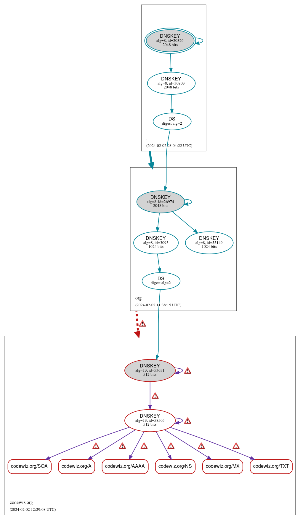 codewiz.org/CNAME has errors; select the "Denial of existence" DNSSEC option to see them.