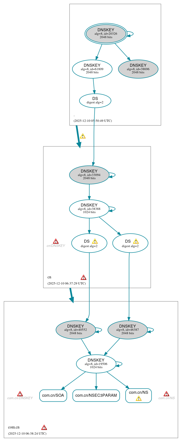 com.cn/DNSKEY has errors; select the "Denial of existence" DNSSEC option to see them.
