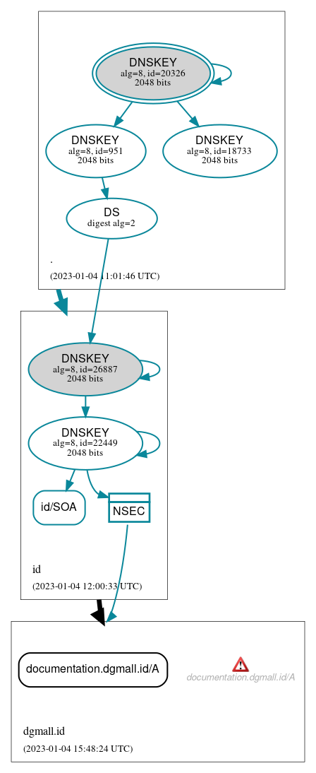 documentation.dgmall.id/AAAA has warnings; select the "Denial of existence" DNSSEC option to see them.