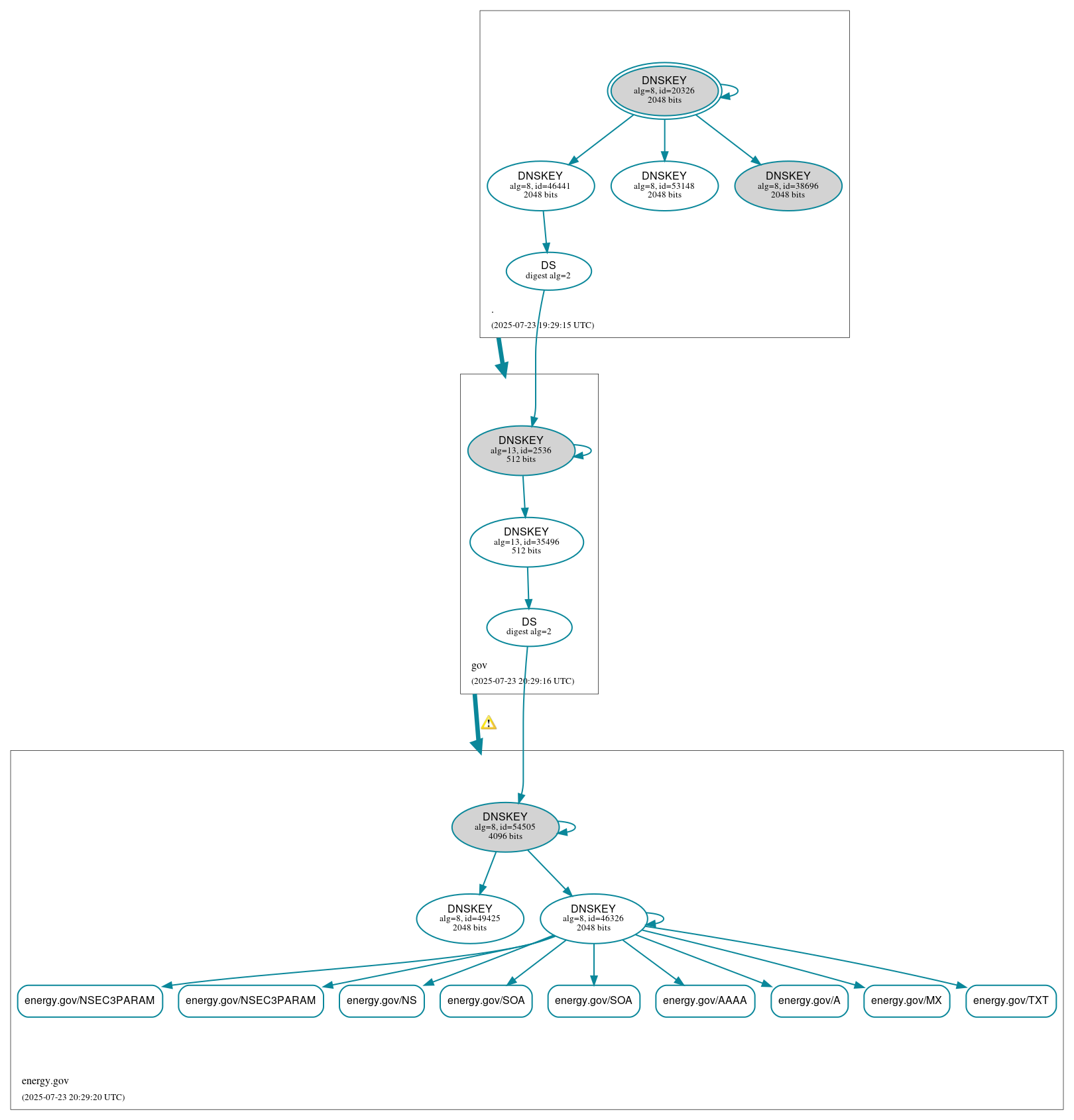 energy.gov/CNAME has errors; select the "Denial of existence" DNSSEC option to see them.