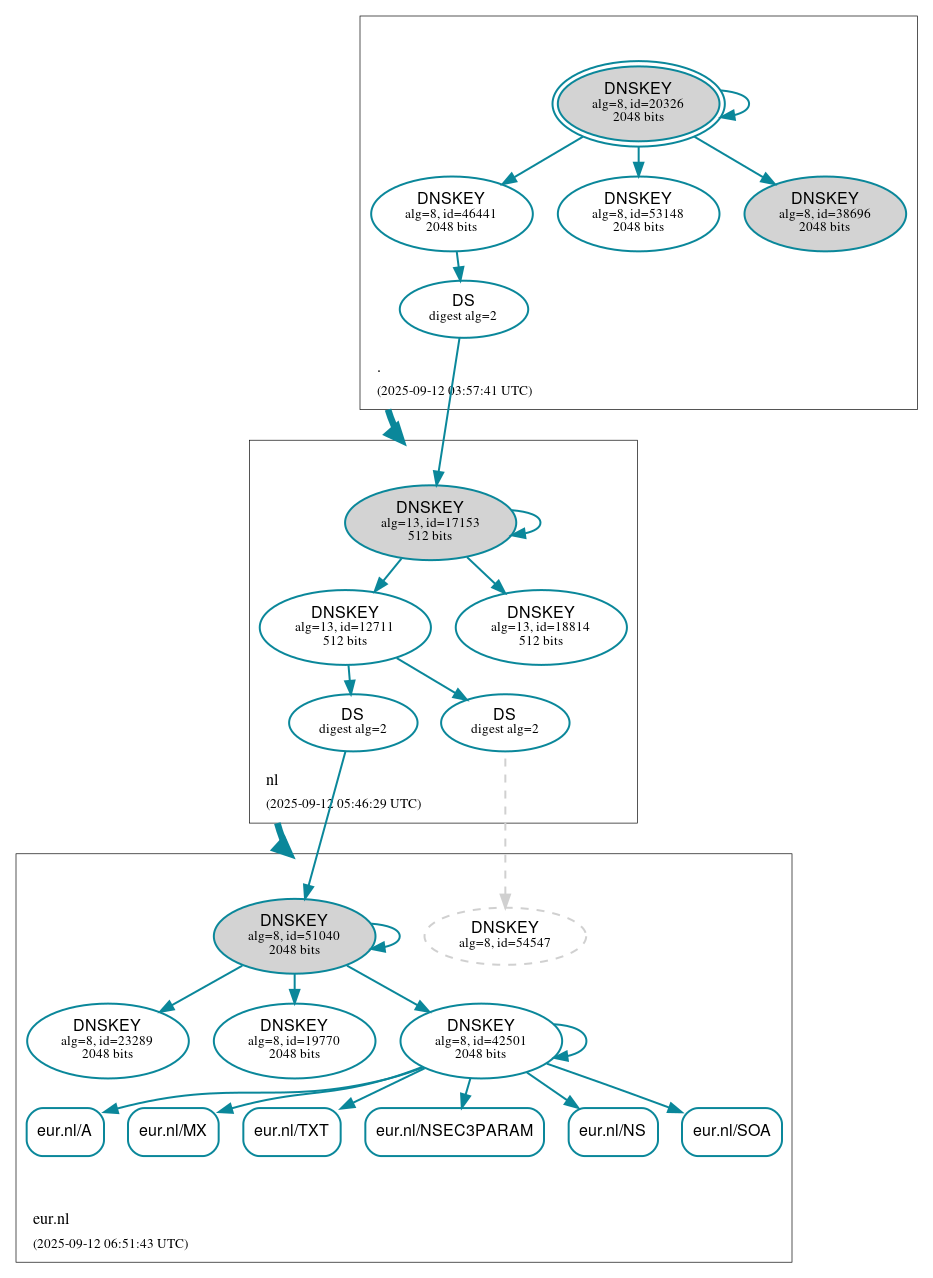 eur.nl/CNAME has errors; select the "Denial of existence" DNSSEC option to see them.