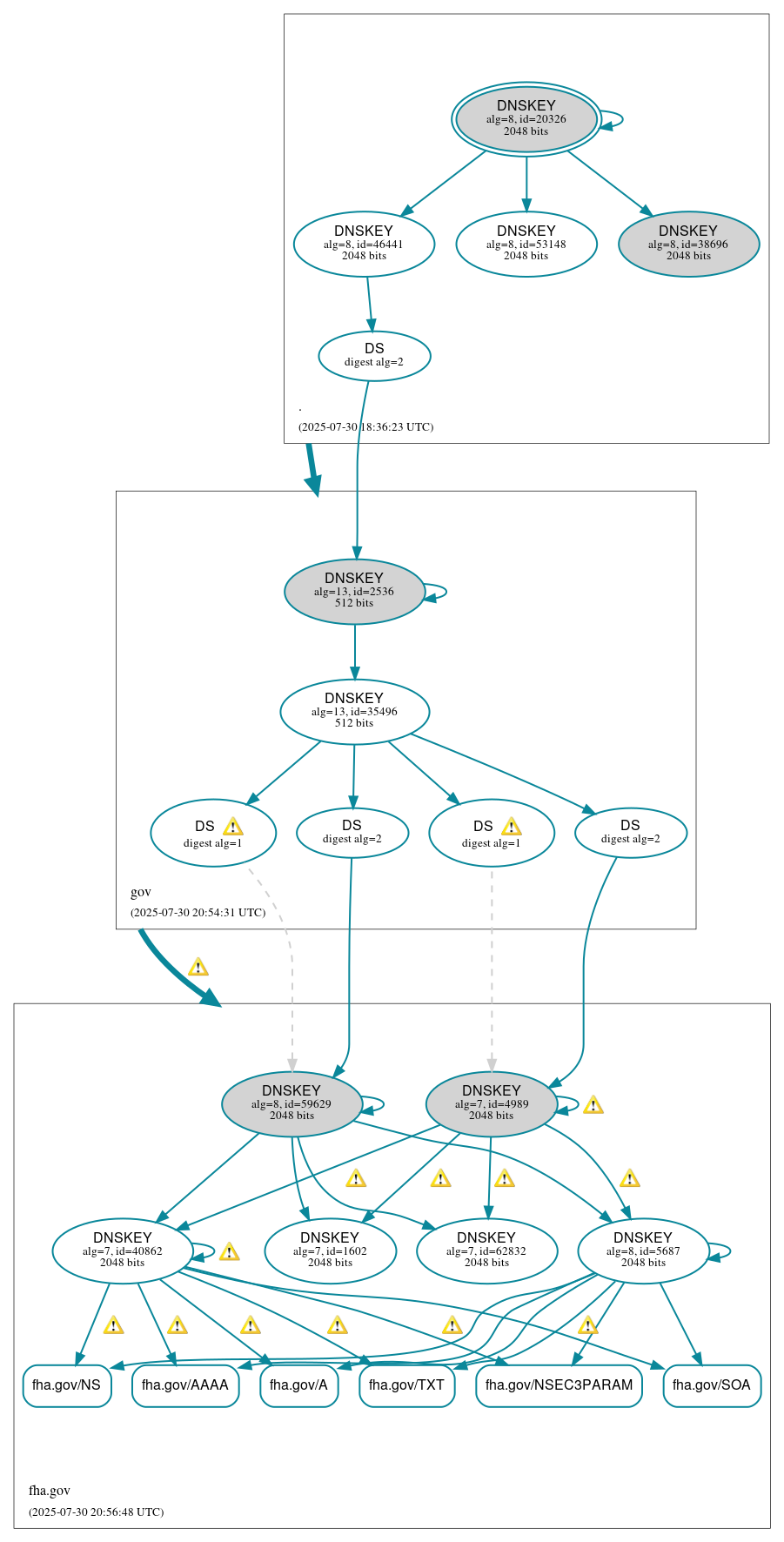 fha.gov/DS (alg 7, id 4989): DNSSEC implementers are prohibited from implementing signing with DS algorithm 1 (SHA-1). See RFC 8624, Sec. 3.2.