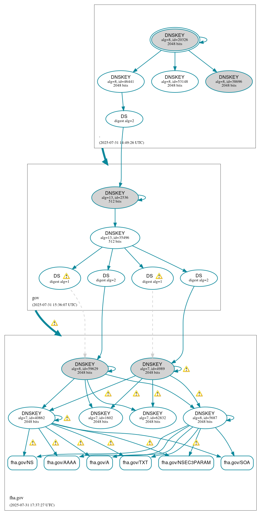 fha.gov/DS (alg 7, id 4989): DNSSEC implementers are prohibited from implementing signing with DS algorithm 1 (SHA-1). See RFC 8624, Sec. 3.2.