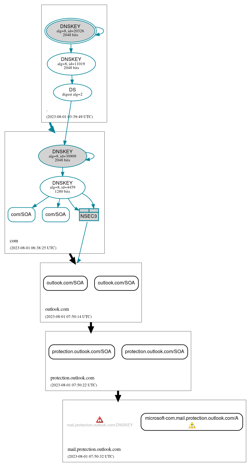 mail.protection.outlook.com/CNAME has errors; select the "Denial of existence" DNSSEC option to see them.