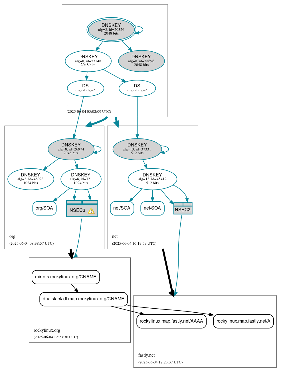 NSEC3 proving non-existence of rockylinux.org/DS: The salt value for an NSEC3 record should be empty. See RFC 9276, Sec. 3.1.