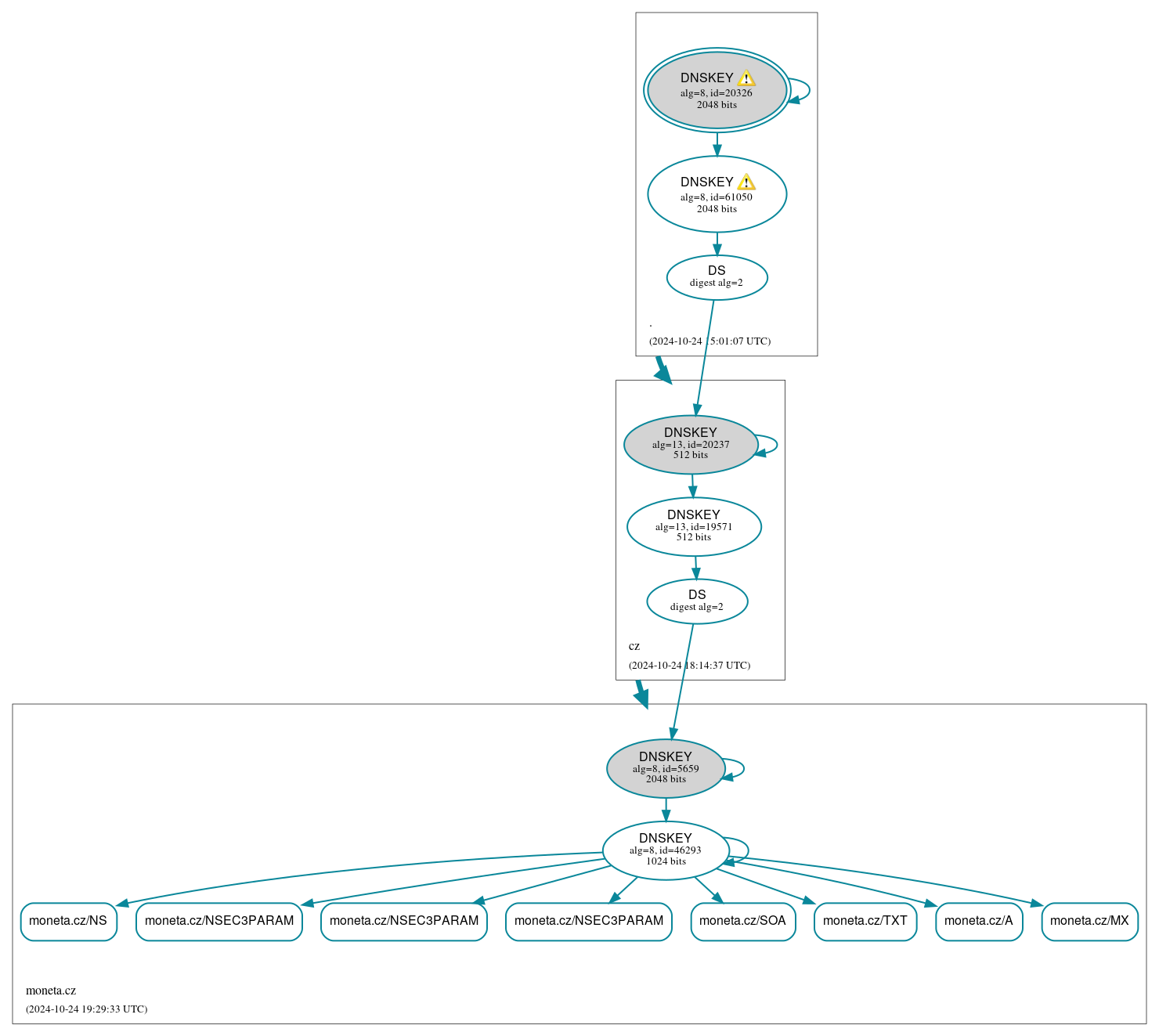moneta.cz/CNAME has errors; select the "Denial of existence" DNSSEC option to see them.