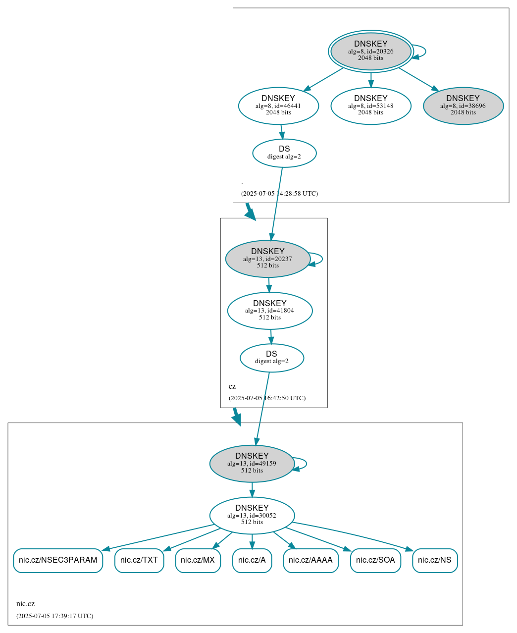 nic.cz/CNAME has warnings; select the "Denial of existence" DNSSEC option to see them.