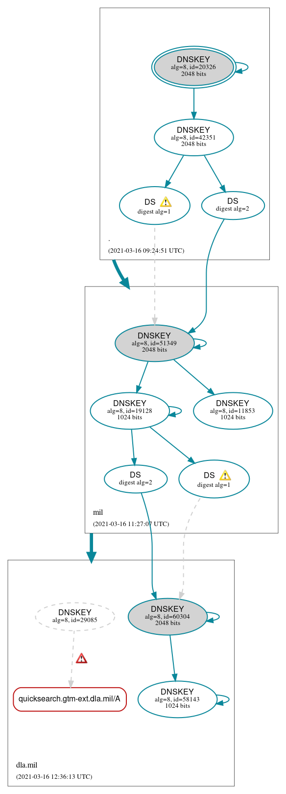 quicksearch.gtm-ext.dla.mil/AAAA has errors; select the "Denial of existence" DNSSEC option to see them.