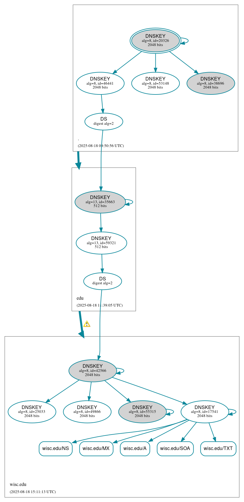 edu to wisc.edu: The glue address(es) for adns3.doit.wisc.edu (2607:f388::a53:3) differed from its authoritative address(es) (2607:f388::a53:3, 2607:f388:2:2001::100b). See RFC 1034, Sec. 4.2.2.