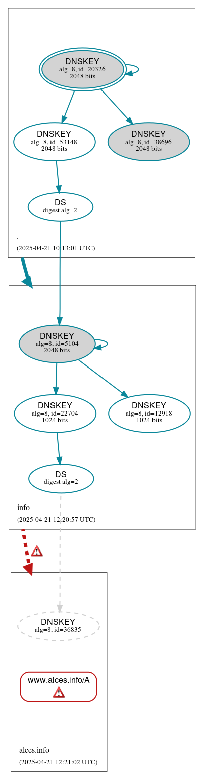alces.info/CNAME has errors; select the "Denial of existence" DNSSEC option to see them.