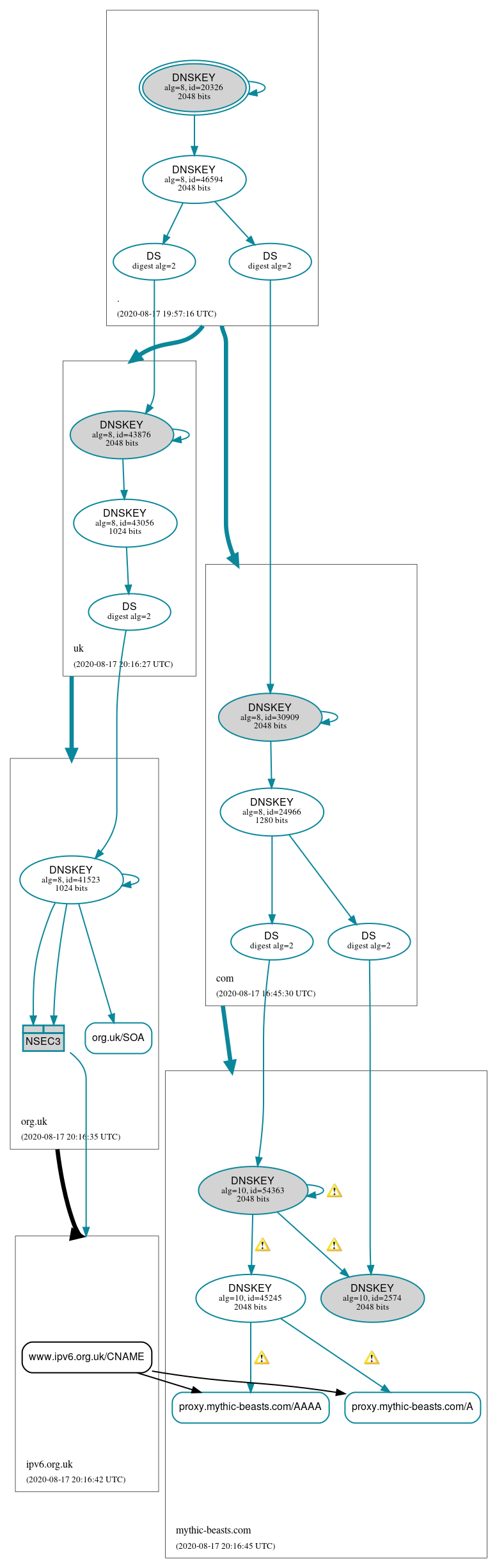 RRSIG proxy.mythic-beasts.com/AAAA alg 10, id 45245: DNSSEC implementers are recommended against implementing signing with DNSSEC algorithm 10 (RSASHA512). See RFC 8624, Sec. 3.1.