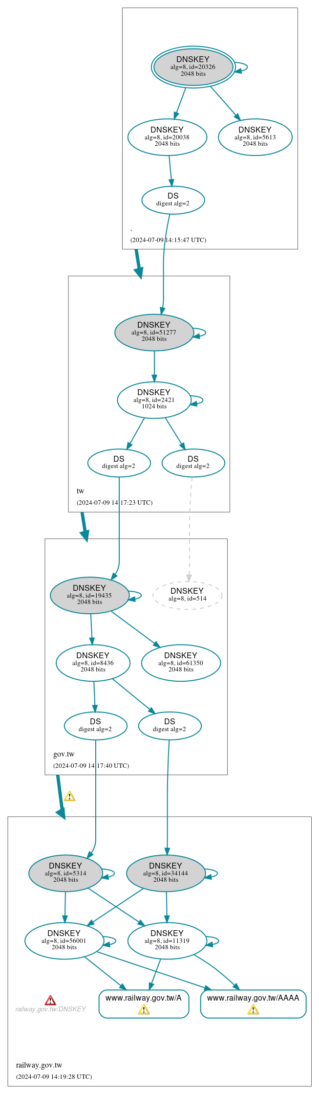 railway.gov.tw/CNAME has errors; select the "Denial of existence" DNSSEC option to see them.